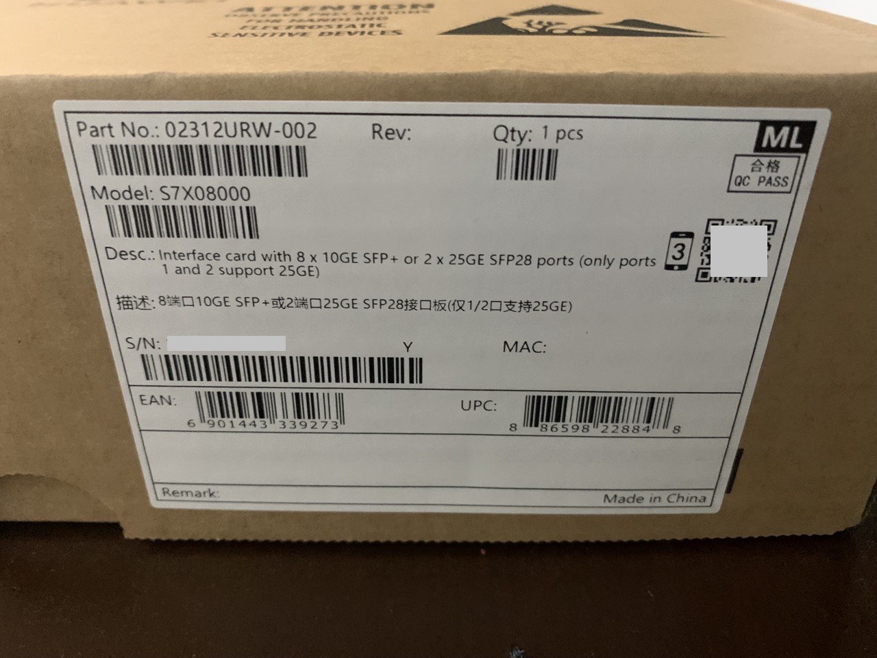 S7X08000 (02312URW/02312URW-002: 8-Port 10GE SFP+ or 2-Port 25GE SFP28 Optical Interface Card (Only Ports 1 and 2 Support 25GE))